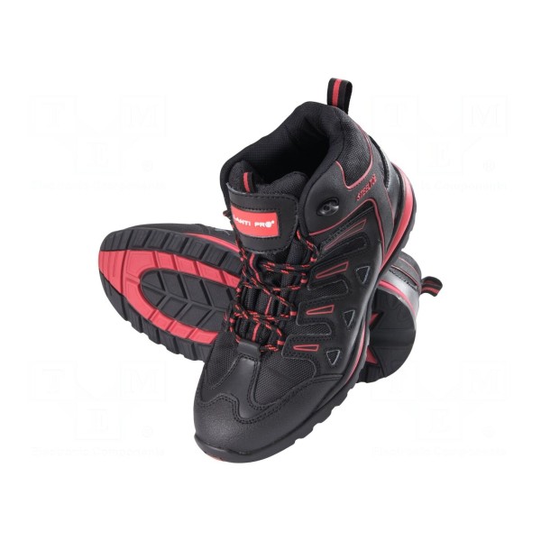 Trzewiki ochronne w rozmiarze 42 wykonane zostały z połączenia skóry oraz tkaniny. Obuwie utrzymane jest w czarnej kolorystyce i wyposażone w metalowy nosek, który zabezpiecza przed urazami mechanicznymi. Produkt spełnia wymogi klasy bezpieczeństwa SB.