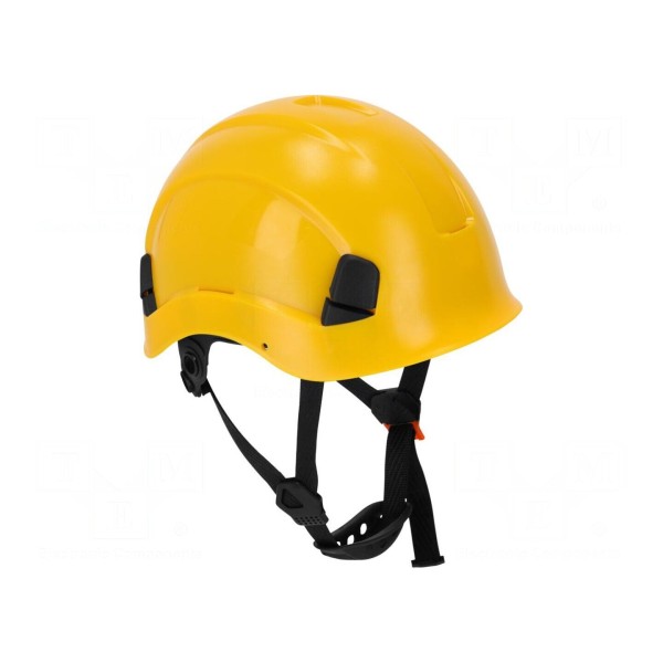 Hełm ochronny wykonany z poliwęglanu (PC) przeznaczony jest do ochrony głowy podczas wykonywania prac na wysokości. Produkt cechuje się klasą ochronności III oraz przystosowaniem do pracy w trudnych warunkach środowiskowych w zakresie temperatur od -30°C do 50°C.