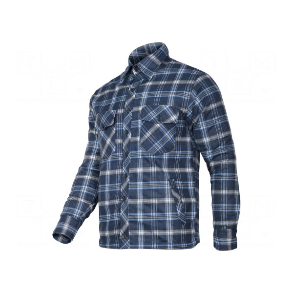 Koszula marki LAHTI PRO to model flanelowy w rozmiarze XXL, wykonany z bawełny o gramaturze 120g/m². Produkt charakteryzuje się ocieplaną konstrukcją, co pozwala na użytkowanie w niższych temperaturach. Kolorystyka odzieży to granatowo-niebieski.