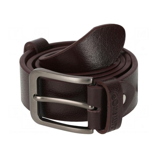 Pasek do spodni wykonany z naturalnej skóry w kolorze brązowym. Element odzieży BHP przeznaczony do codziennego użytku w środowisku roboczym.