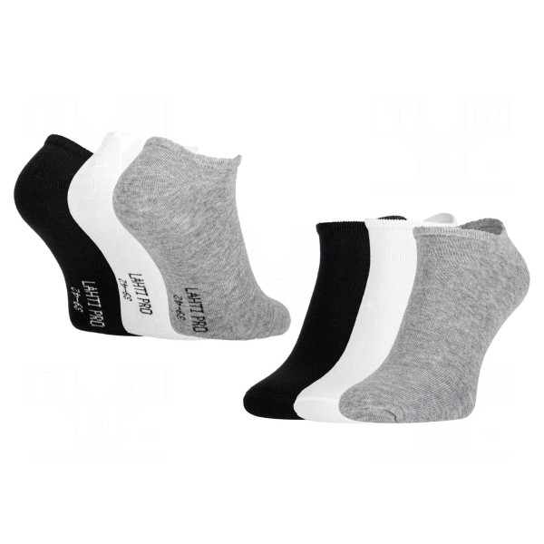 Skarpetki robocze LAHTI PRO w rozmiarze 39-42 to zestaw zawierający 3 pary. Wersja charakteryzuje się cienką i krótką konstrukcją, co pozwala na dopasowanie do różnego typu obuwia w cieplejsze dni.