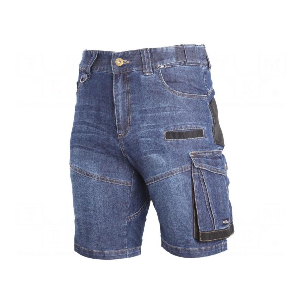 Spodenki ochronne wykonane są z mieszanki bawełny, poliestru, elastanu oraz jeansu. Materiał charakteryzuje się gramaturą 340g/m² i posiada krój typu slim-fit.