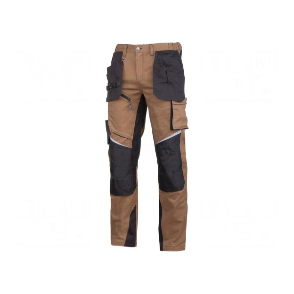 Spodnie robocze wykonane z bawełny z domieszką elastanu w kroju slim-fit. Materiał charakteryzuje się gramaturą 270g/m² i utrzymany jest w kolorystyce brązowo-czarnej.