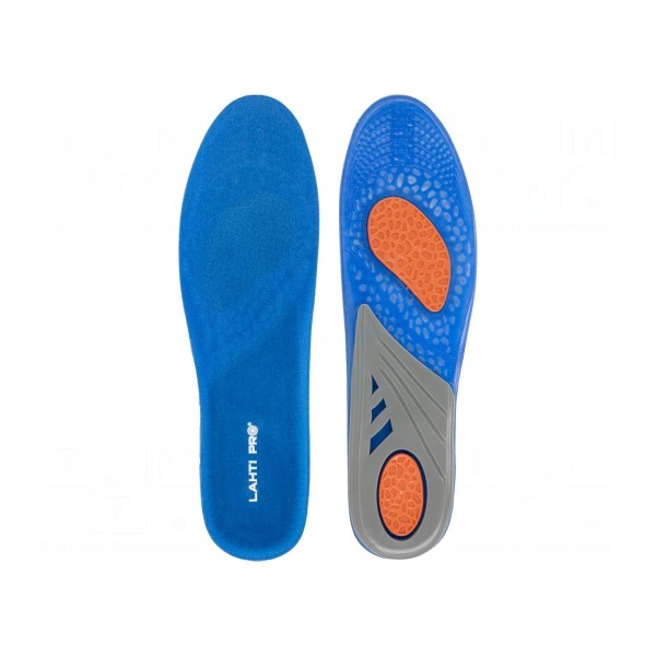 Wkładki do butów LAHTI PRO wykonane są z materiału żelowego. Produkt przeznaczony jest do obuwia w rozmiarze od 41 do 47.