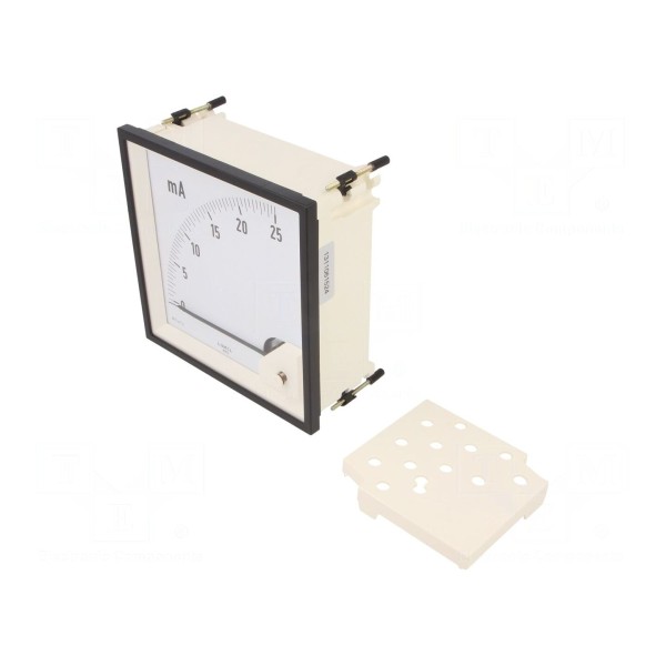 Amperomierz analogowy przeznaczony jest do bezpośredniego pomiaru prądu stałego w zakresie 0–25mA. Urządzenie charakteryzuje się klasą dokładności 1,5 oraz posiada skalę o długości 160mm, co umożliwia odczyt z pozycją pracy ustawioną pod kątem 90°.