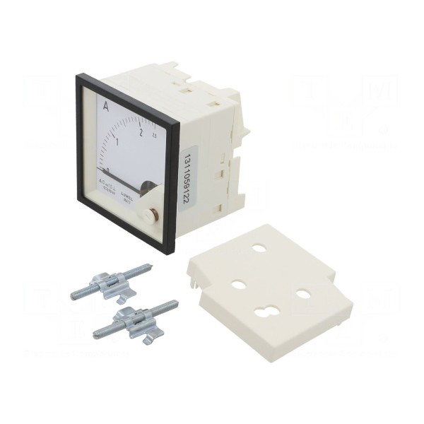 Amperomierz analogowy przeznaczony do montażu panelowego służy do pomiaru prądu stałego w zakresie od 0 do 2,5A. Urządzenie charakteryzuje się klasą dokładności 1,5 oraz długością skali wynoszącą 61mm. Pomiar realizowany jest metodą pośrednią przy użyciu bocznika 60mV przy napięciu maksymalnym do 0,6kV.