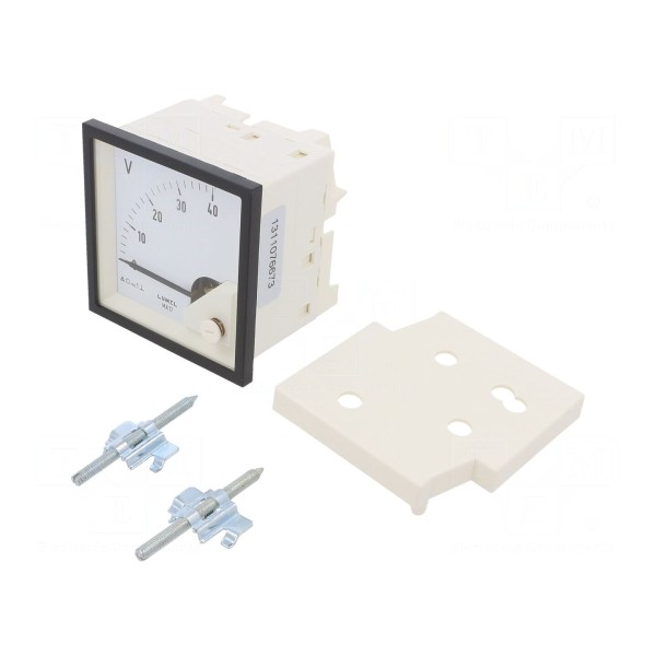 Woltomierz analogowy przeznaczony do montażu panelowego, służący do monitorowania napięcia stałego w zakresie od 0 do 40V. Urządzenie charakteryzuje się klasą dokładności 1,5 oraz dopuszczalnym napięciem maksymalnym do 0,6kV. Konstrukcja zapewnia stopień ochrony IP52, co ogranicza dostęp do elementów pod napięciem i chroni wnętrze przed pyłem oraz wilgocią.