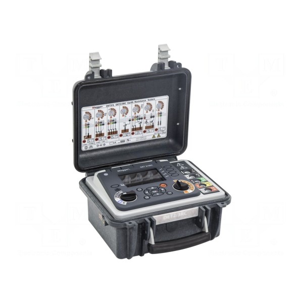 Miernik MEGGER DET2/3 przeznaczony jest do pomiaru rezystancji uziemienia w zakresie od 1mΩ do 20kΩ z rozdzielczością 1mΩ. Urządzenie umożliwia wieloaspektową diagnostykę, obejmującą pomiar rezystywności gruntu, rezystancji metodami 2, 3 i 4-przewodową, a także testy ciągłości obwodu w zakresie 10mΩ do 1kΩ oraz pomiar prądu upływu do 2A. Wykorzystuje częstotliwość sygnału w przedziale 10–200Hz oraz oferuje funkcje automatycznego doboru częstotliwości pomiarowej, filtry i pracę wysokoprądową.