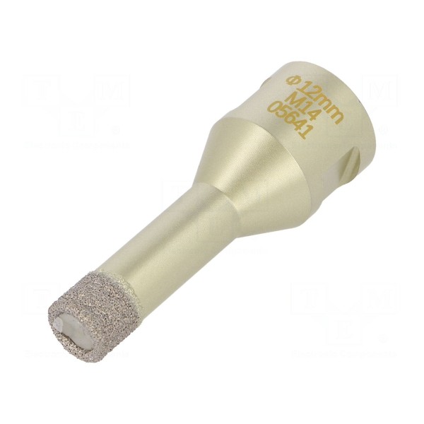 Otwornica diamentowa przeznaczona jest do wykonywania otworów w materiałach takich jak glazura oraz płytki ceramiczne. Narzędzie o średnicy 12 mm zostało wyposażone w standardowy gwint montażowy M14, co pozwala na bezpośrednie mocowanie na szlifierkach kątowych.