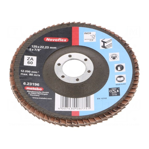 Tarcza szlifierska płatowa 125mm, ziarnistość 60, otwór 22,23mm