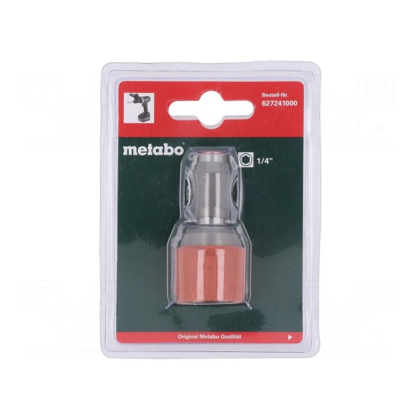 Uchwyt przeznaczony do końcówek wkrętakowych o rozmiarze gniazda 1/4" (6,35 mm). Element jest kompatybilny z urządzeniami marki Metabo wyposażonymi w system mocowania Quick.