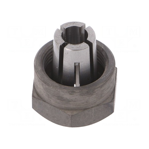 Zacisk mocujący o kształcie sześciokątnym przeznaczony jest do elektronarzędzi. Element posiada gniazdo uchwytu o wymiarze 6mm oraz otwór o średnicy 6mm.