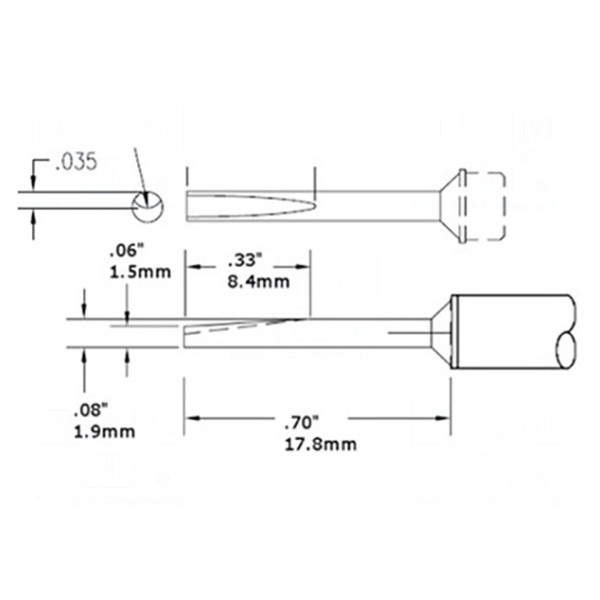 Grot lutowniczy typu z grzałką przeznaczony jest do wykorzystania w stacjach lutowniczych. Element charakteryzuje się kształtem specjalnym oraz wymiarem 2mm, a jego praca odbywa się przy stałej temperaturze wynoszącej 357°C.