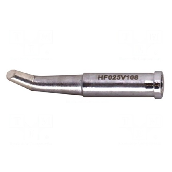 Grot przeznaczony jest do lutownic grzałkowych współpracujących ze stacjami lutowniczymi. Kształt elementu to minifala zagięta, co umożliwia precyzyjne operowanie spoiwem w miejscach o ograniczonej przestrzeni.