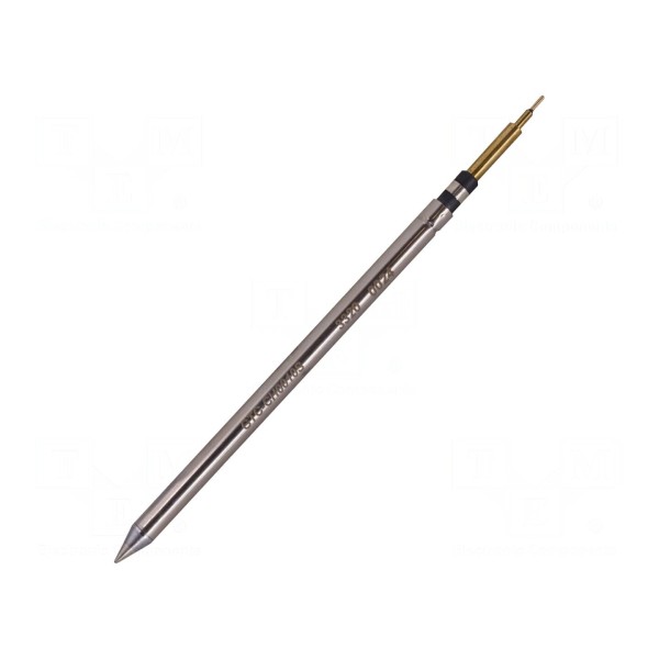 Wymiar końcówki grota wynosi 1mm. Konstrukcja elementu zapewnia odpowiednie przenoszenie energii cieplnej niezbędne do pracy ze stacjami lutowniczymi z serii GT120 oraz GT-HP-T6.