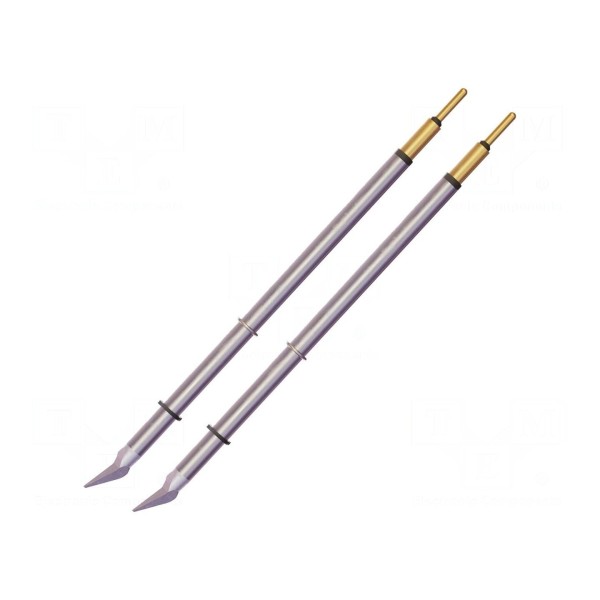 W opakowaniu znajdują się 2 sztuki grotów. Komponent jest kompatybilny z uchwytami lutowniczymi typu CV-H10-MFT, CV-UK10, MX-H10-MFT oraz MX-UK10.