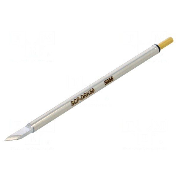 Grot lutowniczy zintegrowany z grzałką został zaprojektowany do współpracy ze stacjami lutowniczymi wykorzystującymi technologię SmartHeat. Element roboczy posiada kształt noża o szerokości 5 mm, co umożliwia precyzyjne operacje w procesach lutowania.