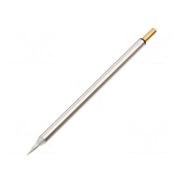 Grot lutowniczy z wbudowaną grzałką przeznaczony jest do stacji lutowniczych obsługujących technologię SmartHeat. Element posiada końcówkę o kształcie stożka wydłużonego o średnicy 0,4mm, co umożliwia precyzyjne operacje w miejscach o ograniczonej dostępności.