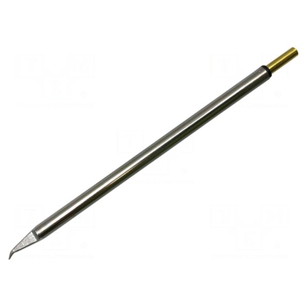 Grot lutowniczy typu kopytko zagięty o średnicy 0,5mm jest przeznaczony do pracy ze stacjami lutowniczymi. Element wykorzystuje zintegrowaną grzałkę oraz technologię SmartHeat, co pozwala na osiągnięcie stałej temperatury pracy wynoszącej 421°C.