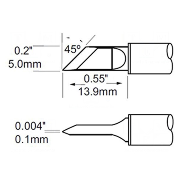 Grot lutowniczy z wbudowaną grzałką o kształcie ostrza typu nóż. Element posiada wymiar 5 mm i został zaprojektowany do pracy w temperaturze 421°C.
