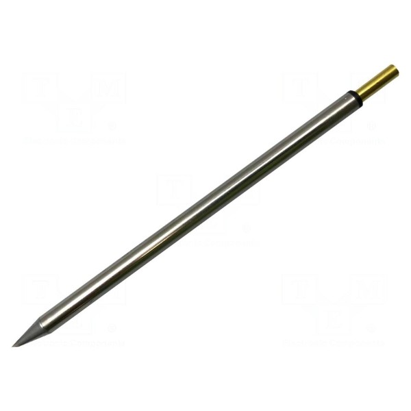 Grot lutowniczy z wbudowaną grzałką jest przeznaczony do pracy ze stacjami lutowniczymi. Element charakteryzuje się kształtem typu minifala oraz wymiarem końcówki wynoszącym 1,5mm.