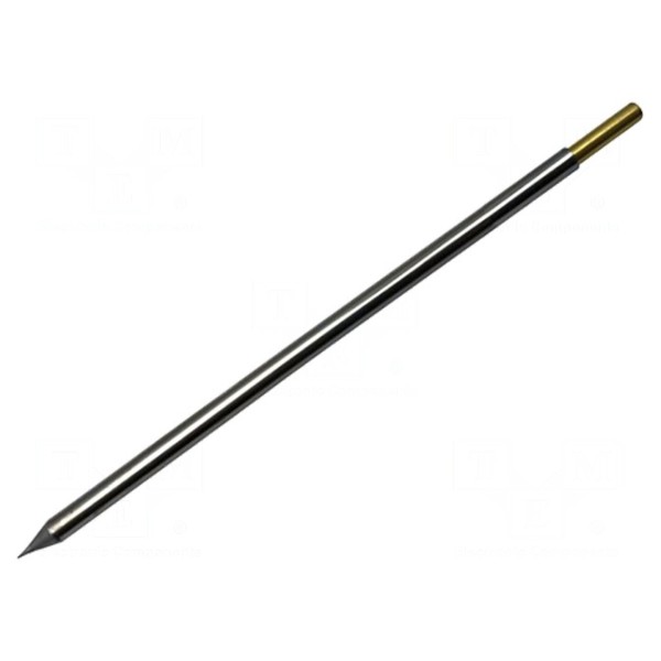 Grot typu stożek przeznaczony jest do wykorzystania z lutownicami oraz stacjami lutowniczymi. Element charakteryzuje się zintegrowaną grzałką oraz końcówką o średnicy 0,4mm, co umożliwia precyzyjną pracę w warunkach warsztatowych.