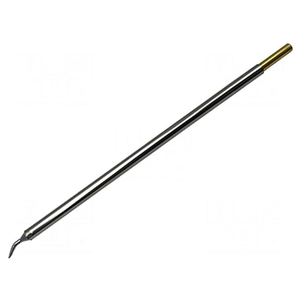Grot lutowniczy typu zagięty wkrętak przeznaczony jest do wykorzystania w stacjach lutowniczych oraz lutownicach współpracujących z systemami Metcal. Element o szerokości końcówki 1,5 mm został wykonany w technologii SmartHeat, która umożliwia uzyskanie stałej temperatury pracy wynoszącej 413°C.
