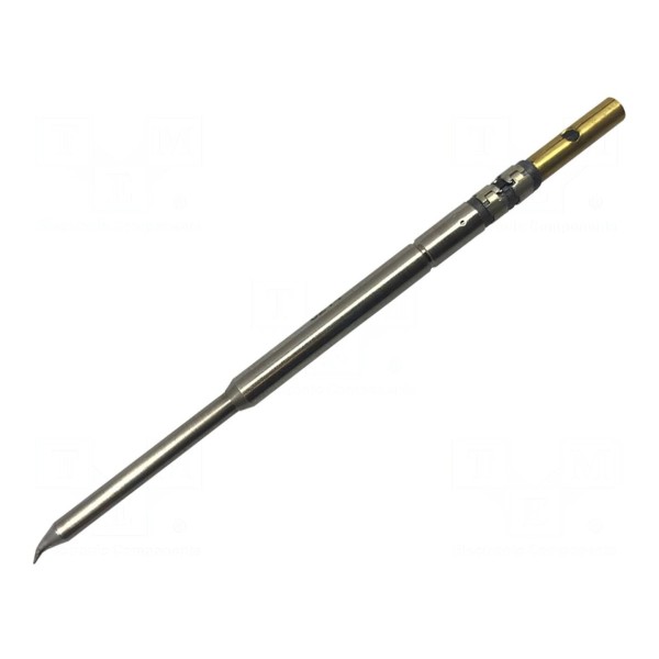 Grot lutowniczy z wbudowaną grzałką o kształcie zagiętego stożka przeznaczony jest do wykorzystania z lutownicami serii UltraFine. Element charakteryzuje się wymiarem końcówki wynoszącym 0,4 mm oraz ustaloną temperaturą pracy na poziomie 413°C.