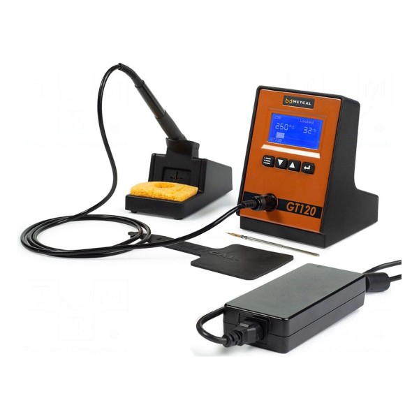 Stacja lutownicza o mocy 120 W wyposażona jest w grzałkę elektromagnetyczną oraz umożliwia cyfrową regulację temperatury w zakresie 200–450°C. Urządzenie charakteryzuje się stabilnością temperaturową na poziomie ±1,1°C oraz obsługą cyfrowej kalibracji temperatury. Informacje o pracy stacji wyświetlane są na ekranie LCD o przekątnej 2,5 cala, a komunikację z urządzeniem zapewnia interfejs USB.