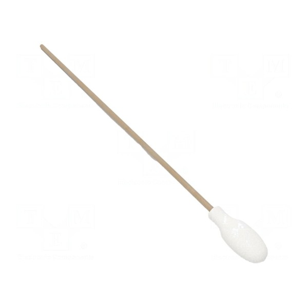 Konstrukcja patyczka opiera się na rękojeści z drewna, zapewniającej stabilny uchwyt podczas pracy. Element może być bezpiecznie stosowany w połączeniu z alkoholem izopropylowym (IPA) lub wodą destylowaną. Zastosowanie preparatu obejmuje nakładanie klejów, usuwanie pozostałości topników oraz wchłanianie nadmiaru substancji chemicznych z powierzchni czyszczonych elementów.