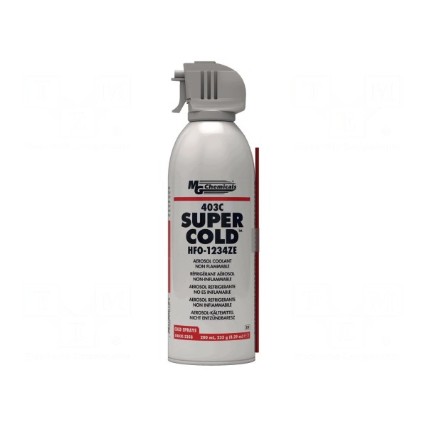 Zamrażacz MG CHEMICALS 403C-235G to bezbarwny, bezwonny preparat w formie aerozolu, dostarczany w puszce. Produkt charakteryzuje się gęstością wynoszącą 1,17g/cm³.
