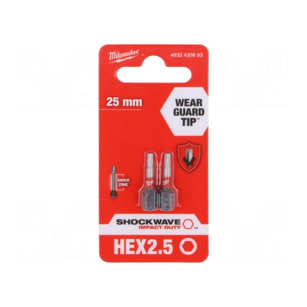 Końcówka wkrętakowa udarowa o typie grota imbus HEX 2,5mm przeznaczona jest do prac montażowych. Produkt charakteryzuje się długością całkowitą wynoszącą 25mm.
