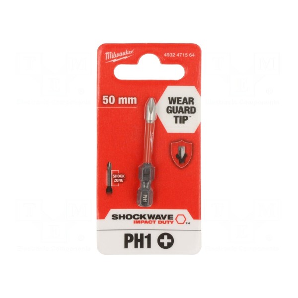 Końcówka wkrętakowa typu Phillips o rozmiarze PH1 została przystosowana do pracy z narzędziami udarowymi. Element charakteryzuje się całkowitą długością wynoszącą 50 mm.