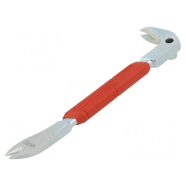 Narzędzie typu łapka o długości całkowitej 228mm zostało zaprojektowane do wyciągania gwoździ. Konstrukcja elementu obejmuje płaską końcówkę, która umożliwia dostęp do mocowań w trudno dostępnych miejscach.
