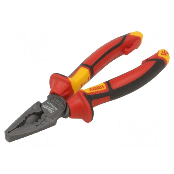 Szczypce uniwersalne typu izolowanego przeznaczone do prac elektrycznych. Narzędzie o długości 165mm wykonane zostało zgodnie z wymogami normy VDE, co zapewnia bezpieczeństwo przy pracach pod napięciem.