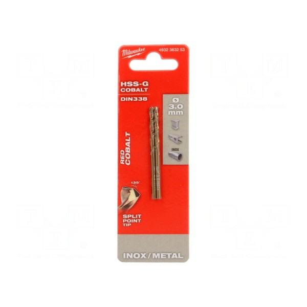 Wiertło przeznaczone do obróbki metalu, wykonane ze stali szybkotnącej kobaltowej HSS-Co. Produkt charakteryzuje się średnicą 3mm i jest dostosowany do pracy w wymagających warunkach materiałowych.