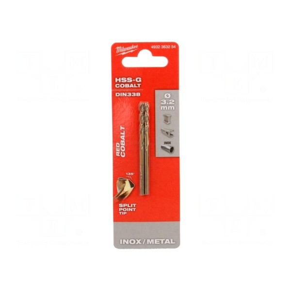Wiertło do metalu HSS-Co, średnica 3,2mm, 2 sztuki