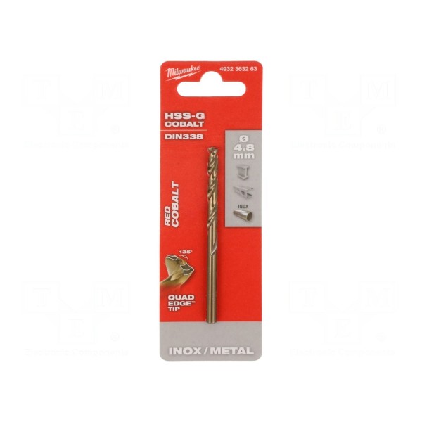 Wiertło przeznaczone do obróbki metalu, wykonane ze stali szybkotnącej kobaltowej HSS-Co. Średnica narzędzia wynosi 4,8 mm, co pozwala na precyzyjne wiercenie w twardych materiałach.