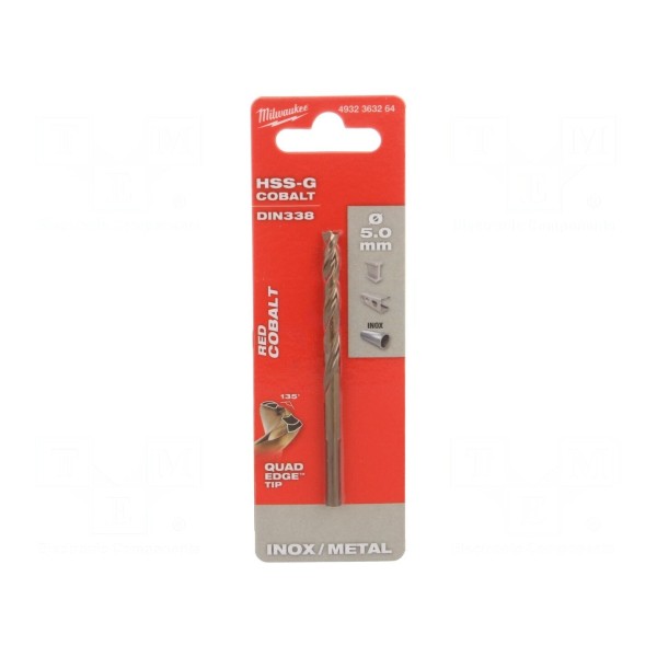 Wiertło do metalu 5mm, stal szybkotnąca kobaltowa HSS-Co