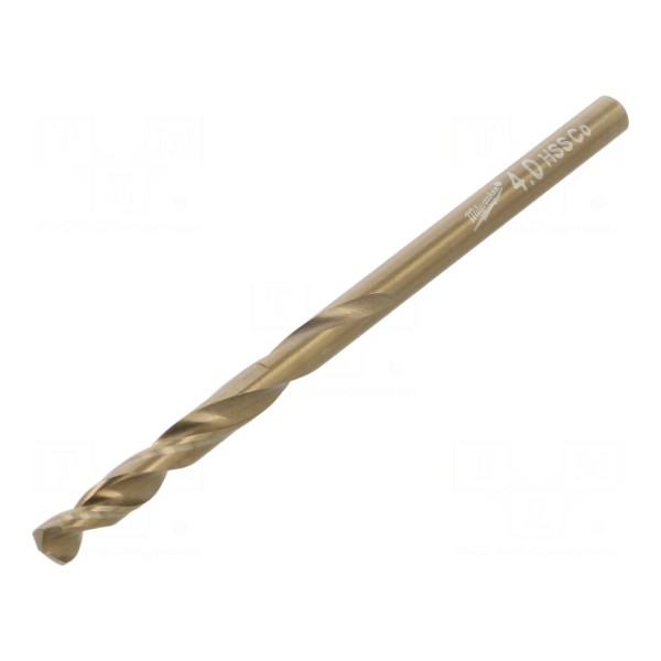 Wiertło wykonane ze stali szybkotnącej kobaltowej HSS-Co przeznaczone do obróbki metalu. Średnica narzędzia wynosi 4 mm, a konstrukcja została zaprojektowana zgodnie z normą DIN 338.