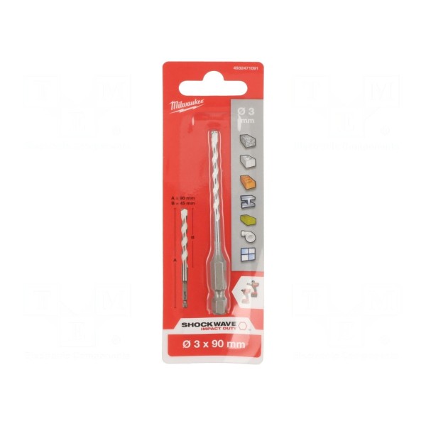 Wiertło udarowe Milwaukee o średnicy 3 mm przeznaczone jest do zastosowań uniwersalnych. Element wykonany został z węglika wolframu, co wpływa na jego wytrzymałość podczas pracy z twardymi materiałami.