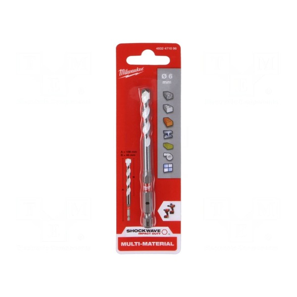 Wiertło udarowe 6mm, uchwyt 1/4" E6,3mm