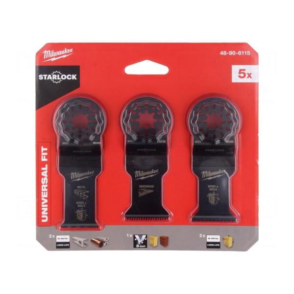 Zestaw zawiera 5 sztuk ostrzy przeznaczonych do pracy z multiszlifierkami. Narzędzia te zostały przystosowane do obróbki materiałów takich jak drewno oraz metal.