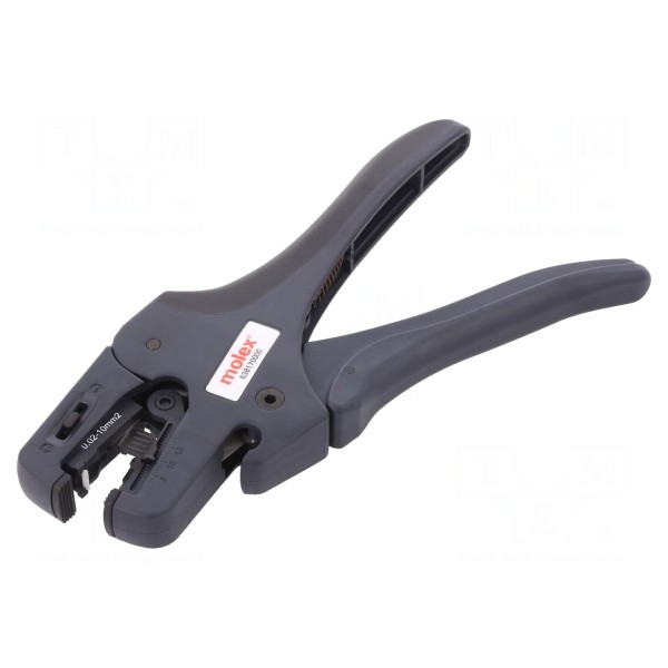 Ściągacz izolacji marki Molex przeznaczony jest do obróbki przewodów okrągłych oraz wielożyłowych. Narzędzie obsługuje przewody o przekroju od 0,05mm² do 10mm² i zostało wyposażone w ostrza o kształcie V, zapewniające precyzyjne nacinanie warstwy zewnętrznej.