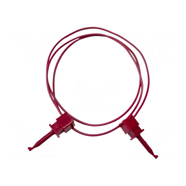 Przewód pomiarowy o długości 0,61 m wyposażony jest w chwytaki haczykowe umieszczone po obu stronach. Konstrukcja elementu wykorzystuje miedź berylową, zapewniając sprawne połączenie w układach pomiarowych. Przewód posiada izolację wykonaną z PVC oraz występuje w kolorze czerwonym.