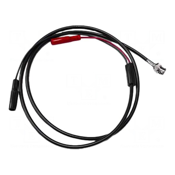 Przewód pomiarowy o długości 0,9 m wyposażony jest z jednej strony we wtyk BNC, a z drugiej w dwa zaciski krokodylkowe. Konstrukcja zapewnia stabilne połączenie w układach pomiarowych, wykorzystując złocone styki dla poprawy parametrów stykowych.