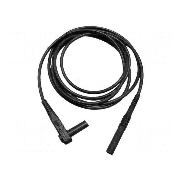 Przewód pomiarowy w czarnym kolorze o długości 1,8m przeznaczony jest do transmisji sygnałów elektrycznych o prądzie znamionowym do 20A oraz napięciu znamionowym do 1kV. Zakończenia przewodu stanowią wtyk bananowy 4mm oraz wtyk bananowy kątowy 4mm. Oba złącza posiadają izolowaną konstrukcję, co zwiększa bezpieczeństwo użytkowania podczas prowadzenia prac pomiarowych.