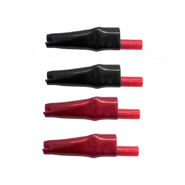 Zacisk krokodylkowy o prądzie znamionowym 10A przeznaczony jest do wykonywania połączeń pomiarowych. Element wyposażony jest w gniazdo o rozmiarze 4mm, a jego styki zostały pokryte warstwą niklu dla zapewnienia odpowiedniego przewodzenia. Izolację wykonano z materiału PVC w kolorach czarnym i czerwonym.