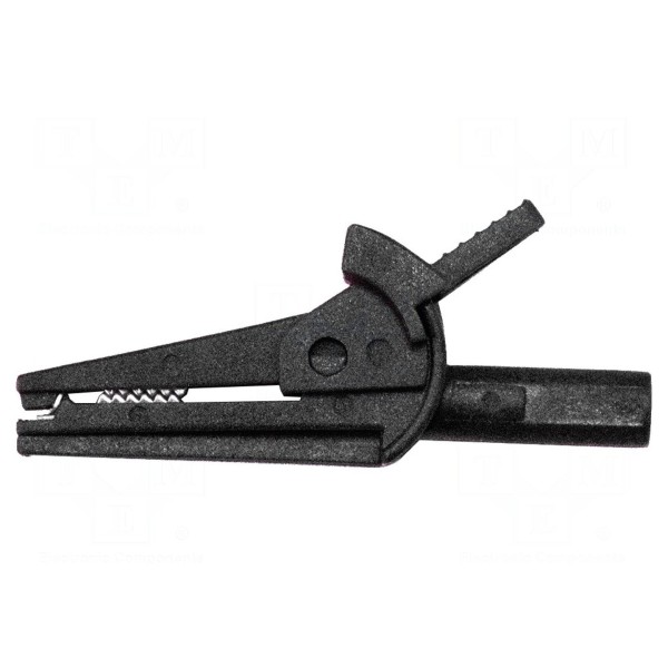Zacisk krokodylkowy przystosowany jest do pracy z prądem znamionowym o natężeniu do 6A. Element wyposażony został w stalowe styki z niklowanym pokryciem, co zapewnia odpowiednie parametry przewodzenia w typowych zastosowaniach pomiarowych. Konstrukcja umożliwia uchwyt obiektów o maksymalnej średnicy 15,7mm.