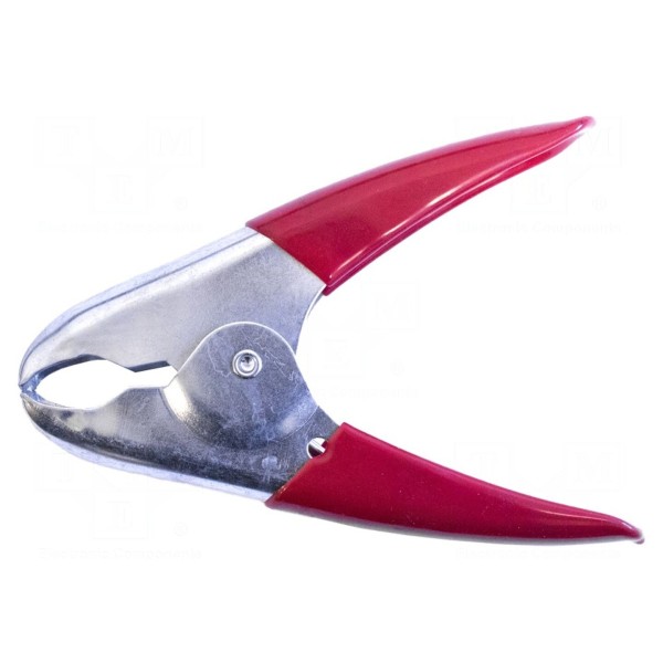 Styki zacisku wykonane zostały ze stali ocynkowanej, co zapewnia trwałość połączenia. Całkowita długość elementu wynosi 152mm, a montaż przewodu odbywa się metodą lutowania. Produkt dostępny jest w kolorze czerwonym.